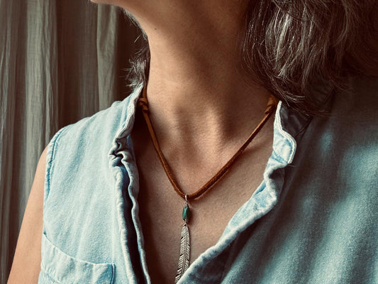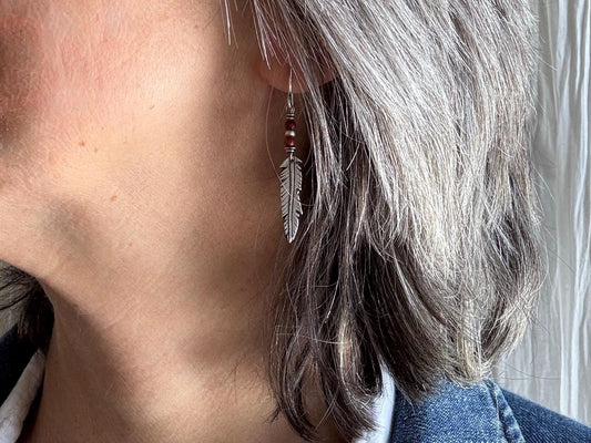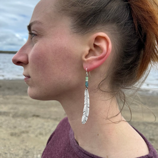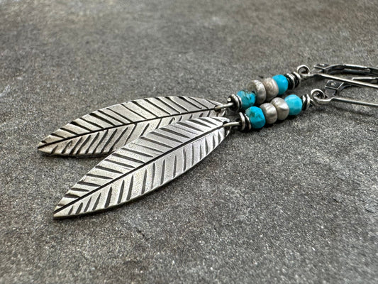 Simple silver feather earrings with bright blue turquoise - pair or single