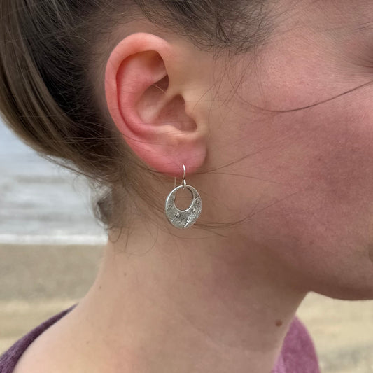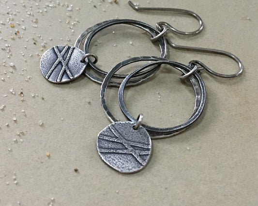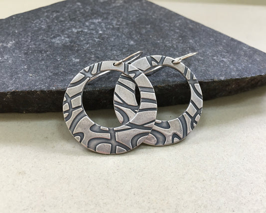 Organic textured hoop earrings with rustic charm in oxidized sterling silver