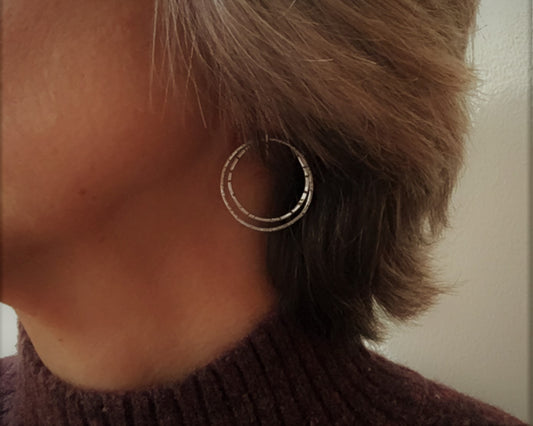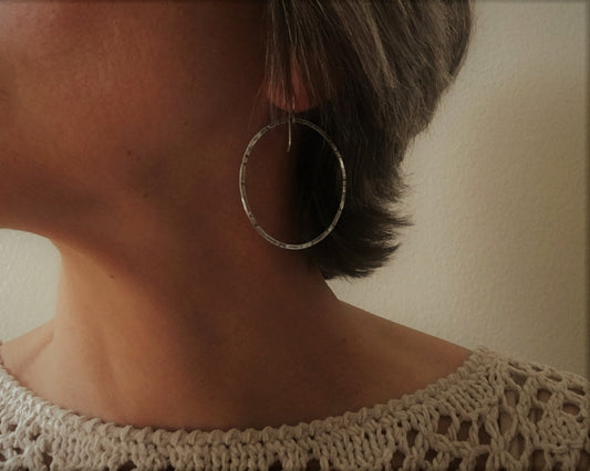 Large textured hoops in oxidized sterling silver