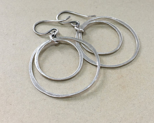 Simple double hoops in brushed satin sterling silver