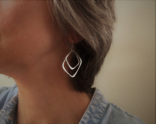 Silver double rectangle hoops in brushed satin finish