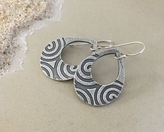 Geometric spiral teardrops in oxidized sterling sterling