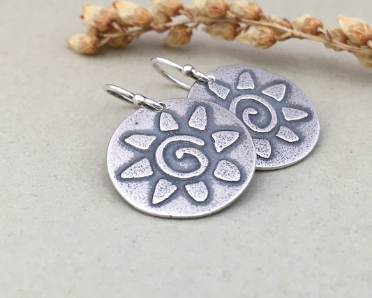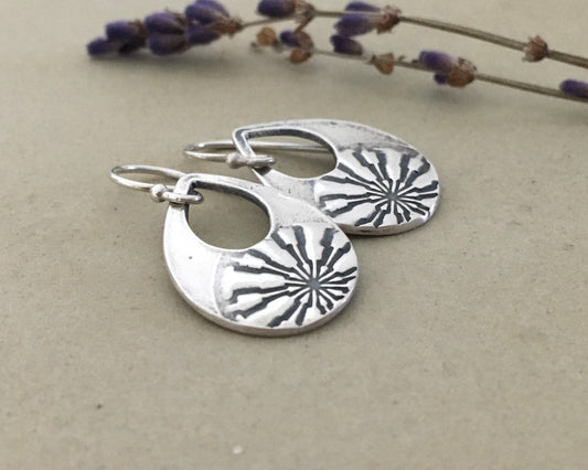 Primitive sun earrings in oxidized sterling silver