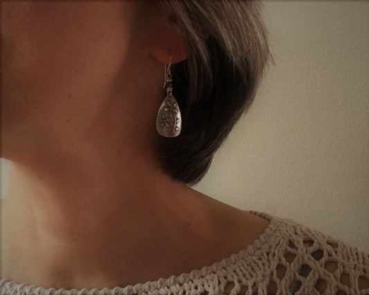 Bohemian flower earrings in oxidized sterling silver with African turquoise