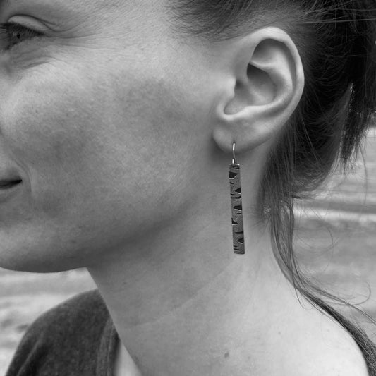 Birch bark earrings in oxidized sterling silver