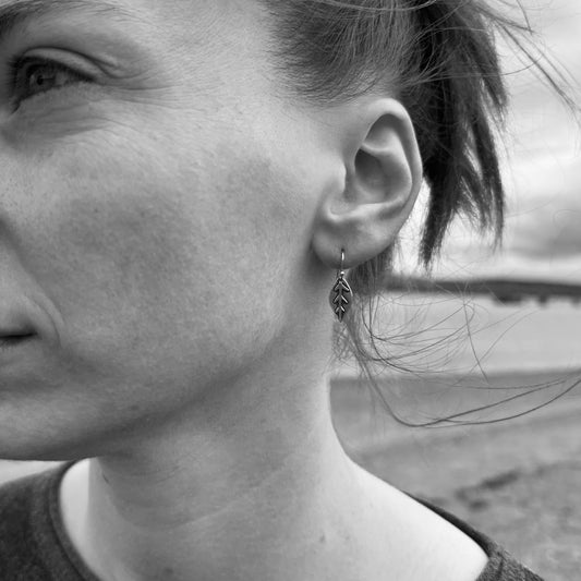 Little silver leaf earrings - simple rustic design