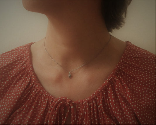 Tiny silver leaf necklace in oxidized sterling silver