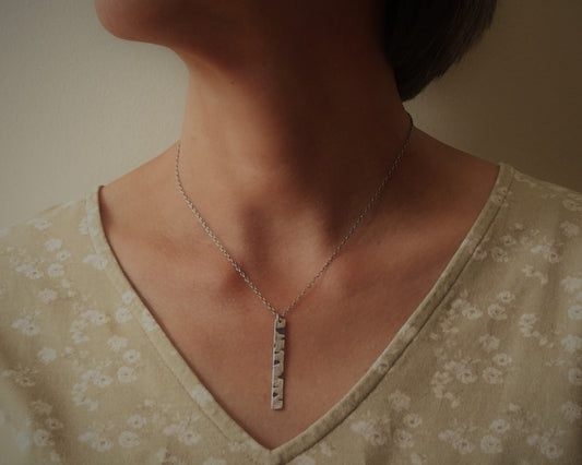 Silver birch bark necklace in oxidized sterling silver